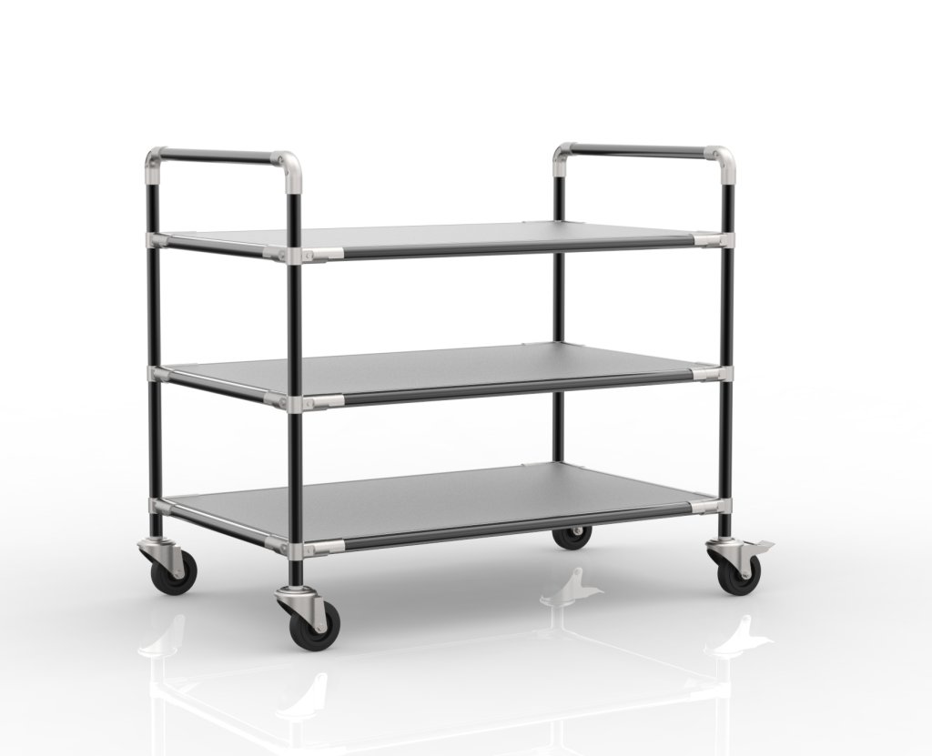 ​​​​​​Antistatický policový vozík z rúrkového stavebnicového systému je ideálnou voľbou na manipuláciu s tovarom citlivým na elektrostatický výboj. Súčasťou vozíka je ESD lamino doska s hrúbkou 18 mm. Rozmery 964 x 1068 x 668 mm, priemer kolieska 100 mm.