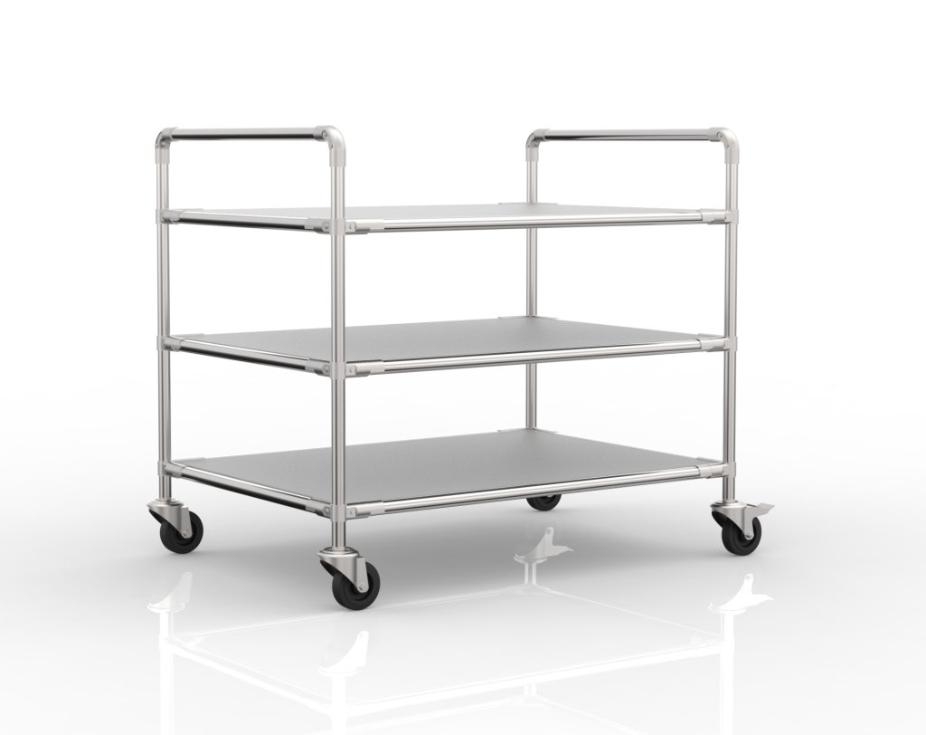 ​​​​​​Antistatický policový vozík z rúrkového stavebnicového systému je ideálnou voľbou na manipuláciu s tovarom citlivým na celý popis a parametre