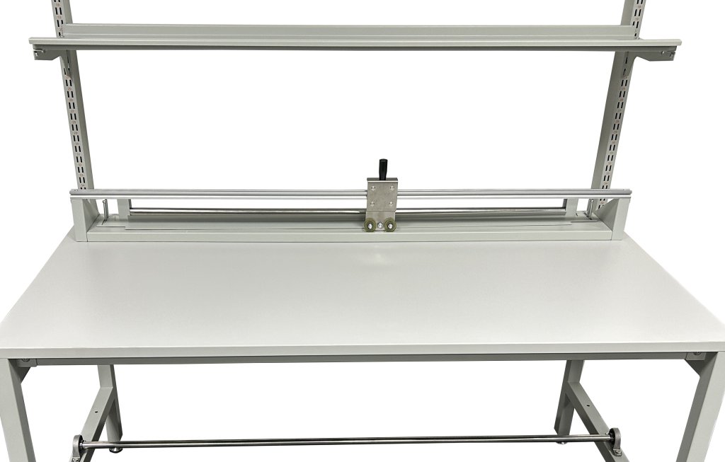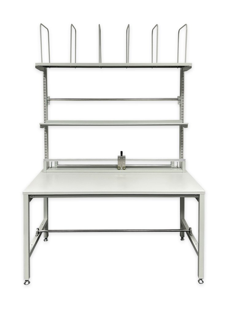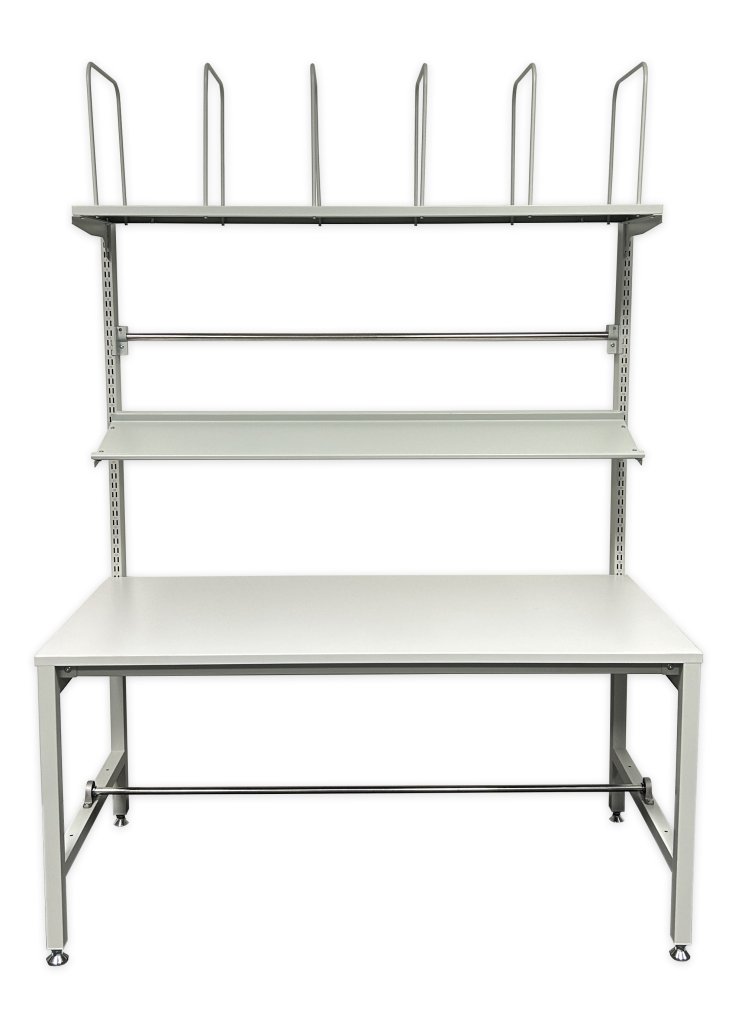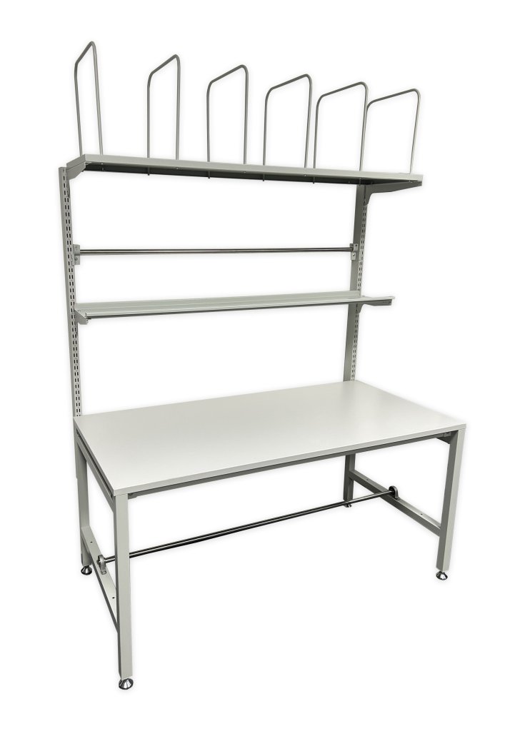 Univerzálny baliaci stôl na kompletizáciu a expedíciu zásielok v baliacich centrách. Rozmery výška 2170 x šírka 1550 x hĺbka 800 mm. Farba dosky a konštrukcia šedá RAL 7035.