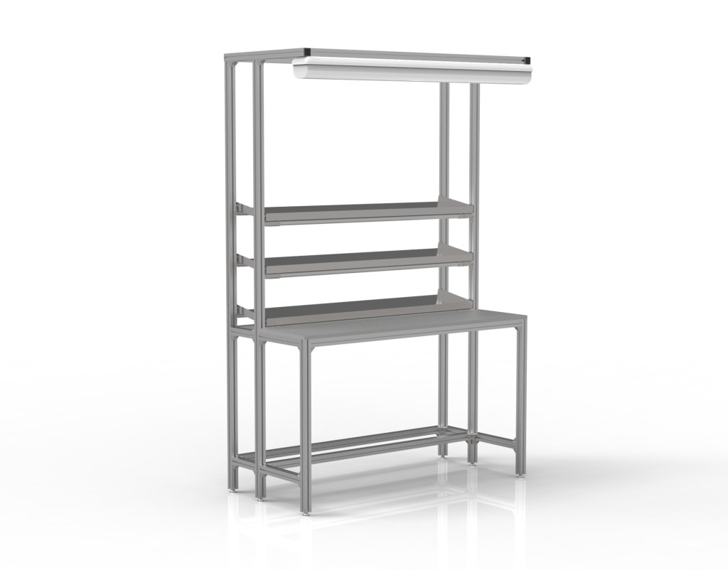 Dielenský stôl z hliníkových profilov s pozinkovanými policami
