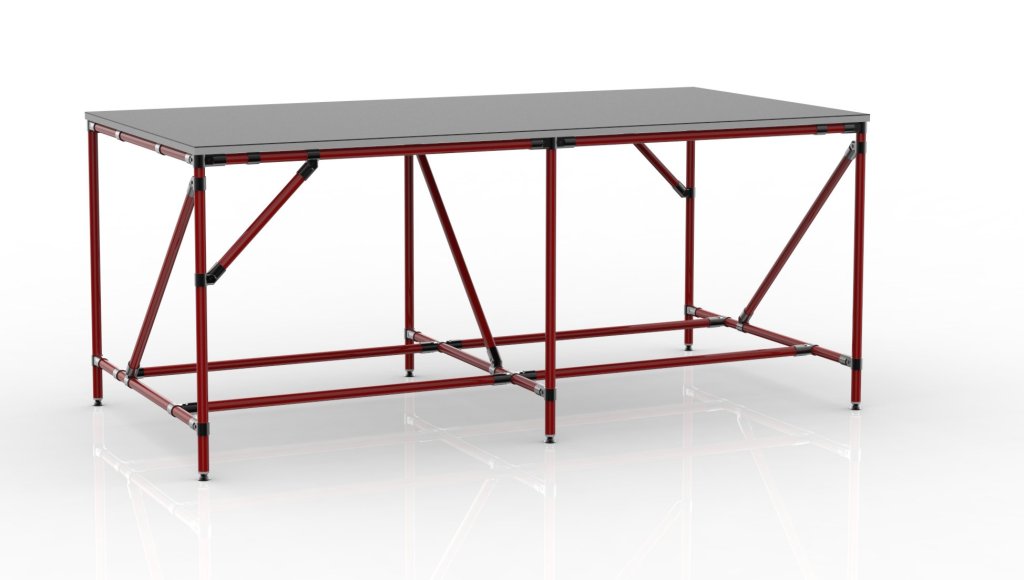 Pracovný stôl z trubkového stavebnicového systému s DTDL pracovnou doskou hrúbky 18 mm as protišmykovou vrstvou hrúbky 3 mm. Stôl poskytuje dostatok priestoru na komplementáciu a balenie objednávok a pod. Nosnosť pri rovnomernom zaťažení 200 kg. Rozmery 850 x 2000 x 1000 mm.