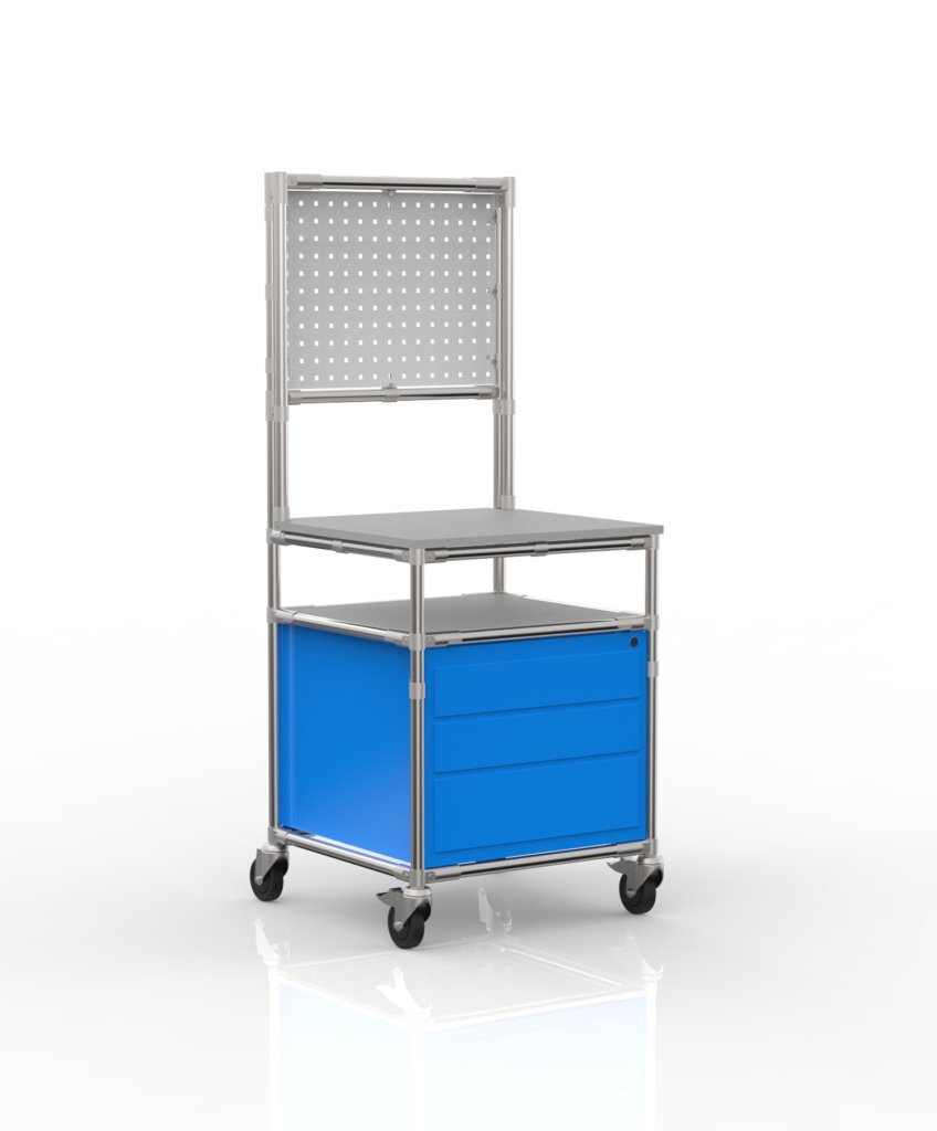 Dielenský pracovný vozík vyrobený z trubkového stavebnicového systému. Tento vozík je vybavený doskou z laminovanej drevotriesky s hrúbkou 18 mm, ktorá poskytuje pevnú a stabilnú pracovnú plochu. Súčasťou vozíka sú štyri kolieska s priemerom 100 mm. Celková nosnosť 250 kg, nosnosť poschodia 100 kg. Rozmer 900 x 1333 x 583 mm.