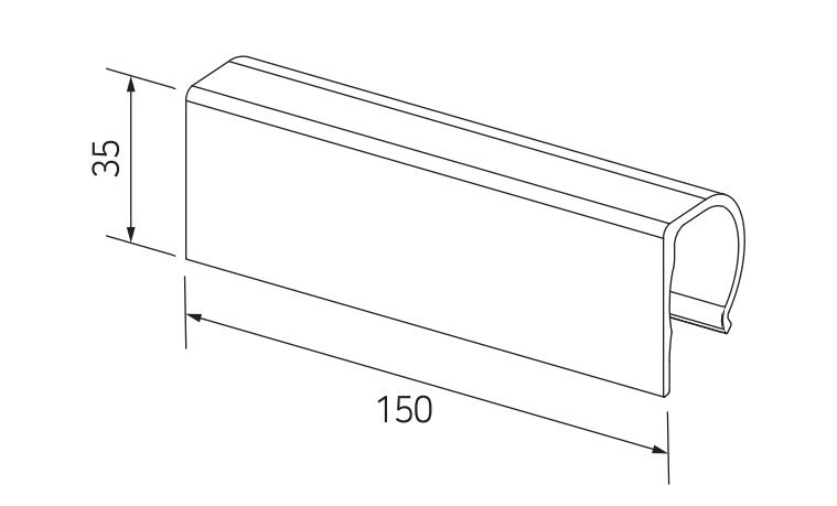 Držiak na nalepovací štítok veľkosti 150 x 35 mm.