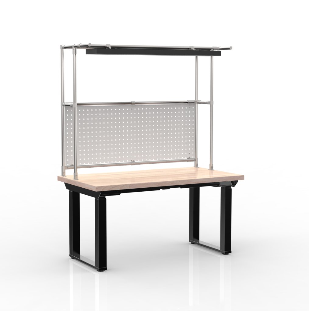 Výškovo nastaviteľný baliaci pracovný stôl s pracovnou doskou z bukovej škárovky. Súčasťou stola je perforovaný panel na zavesenie boxov alebo náradia a LED osvetlenie. Výška pracovnej plochy je nastaviteľná v rozmedzí 700 - 1350 mm. Nosnosť pri rovnomernom zaťažení je 250 kg. Rozmery 1800 - 2450 x 1400 x 750 mm.