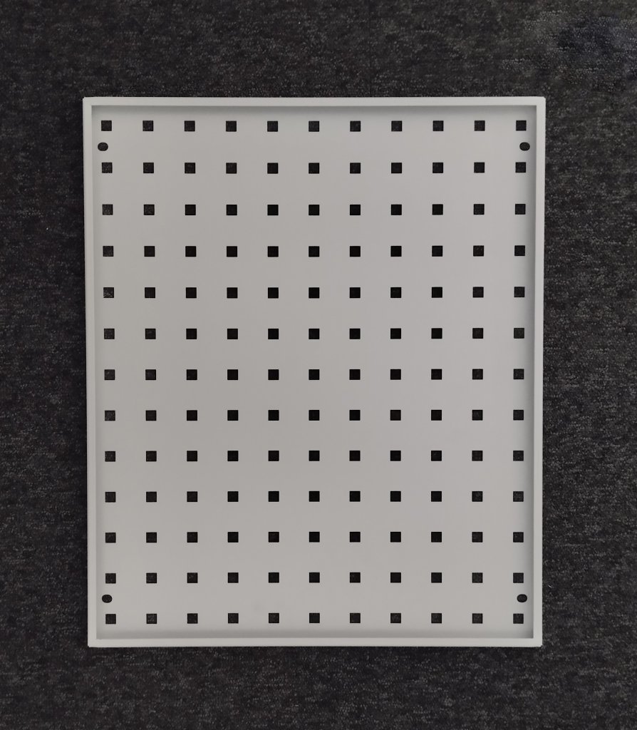 ESD perfopanel so zaoblenými hranami. Otvory na uchytenie do rúrkového systému alebo na stenu. Ideálny na zavesenie držiakov náradia a pre rýchly prístup k spojovaciemu materiálu. ESD prevedenie poskytuje spoľahlivú ochranu proti elektrostatickému výboju. Rozmery 1117 x 300 mm, hrúbka 1,4 mm, štvorcové otvory 10 x 10 mm, rozstup otvorov 38 x 38 mm, farba sivá RAL 7035.