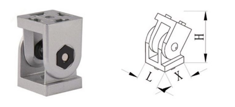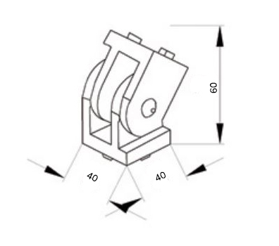 Kývna spojka vhodná ako výstuha alebo na vytvorenie spoja pod rôznymi uhlami. Rozmer 60 x 40 x 40 mm.