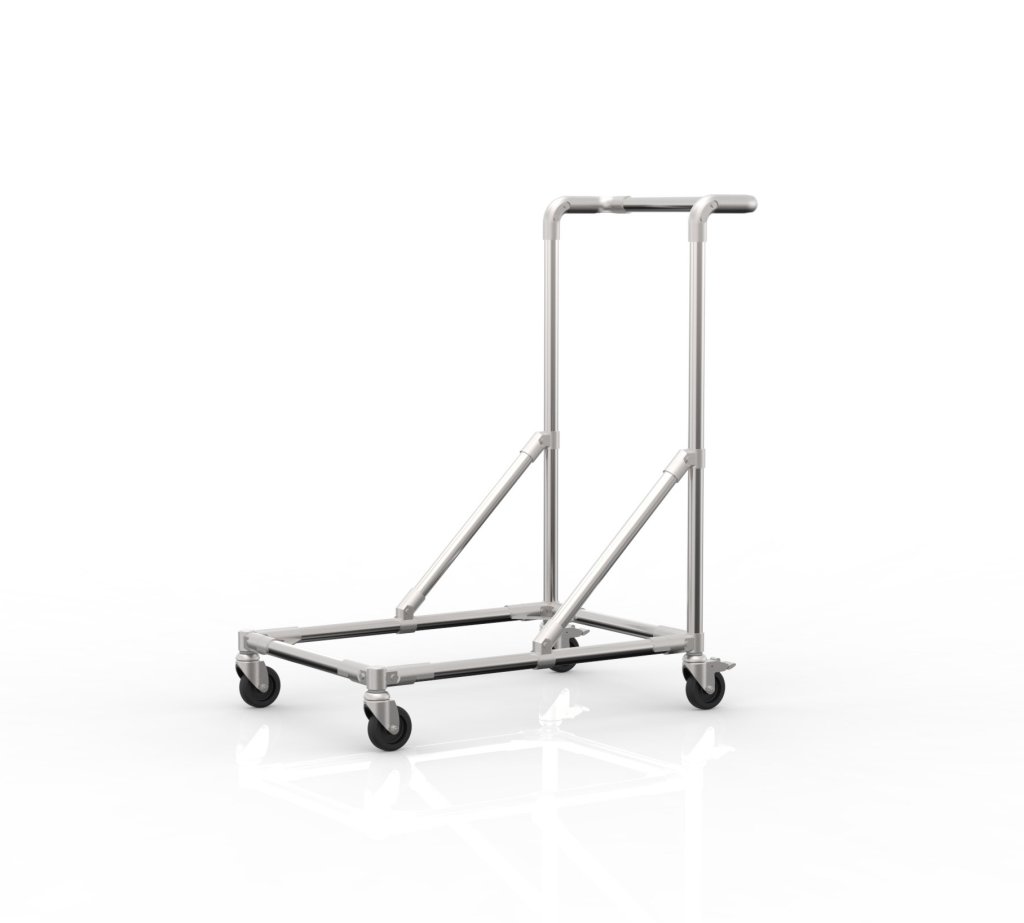 Manipulačný podvozok s držadlom vyrobený s rukoväťou z rúrkového systému vhodný pre rôzne manipulačné účely v skladoch aj dielňach. Súčasťou podvozku sú 2 otočné kolieska s brzdou a 2 otočné kolieska bez brzdy s priemerom 75 mm, ktoré umožňujú ľahkú manipuláciu s predmetmi. Vnútorný rozmer je navrhnutý pre bedňu o rozmeroch 600 x 400 mm. Rozmery 900 x 678 x 478 mm.