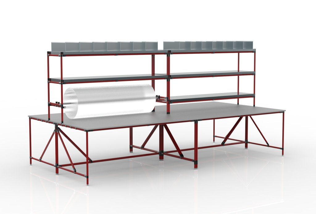 Univerzálny baliaci stôl na kompletizáciu a expedíciu zásielok. Farba konštrukcie voliteľná podľa rúrok. Pri rovnomernom zaťažení nosnosť 100 kg. Rozmery 2002 x 1803 x 803 mm. Stôl je vhodný pre e-shopy, logistické centrá a sklady.