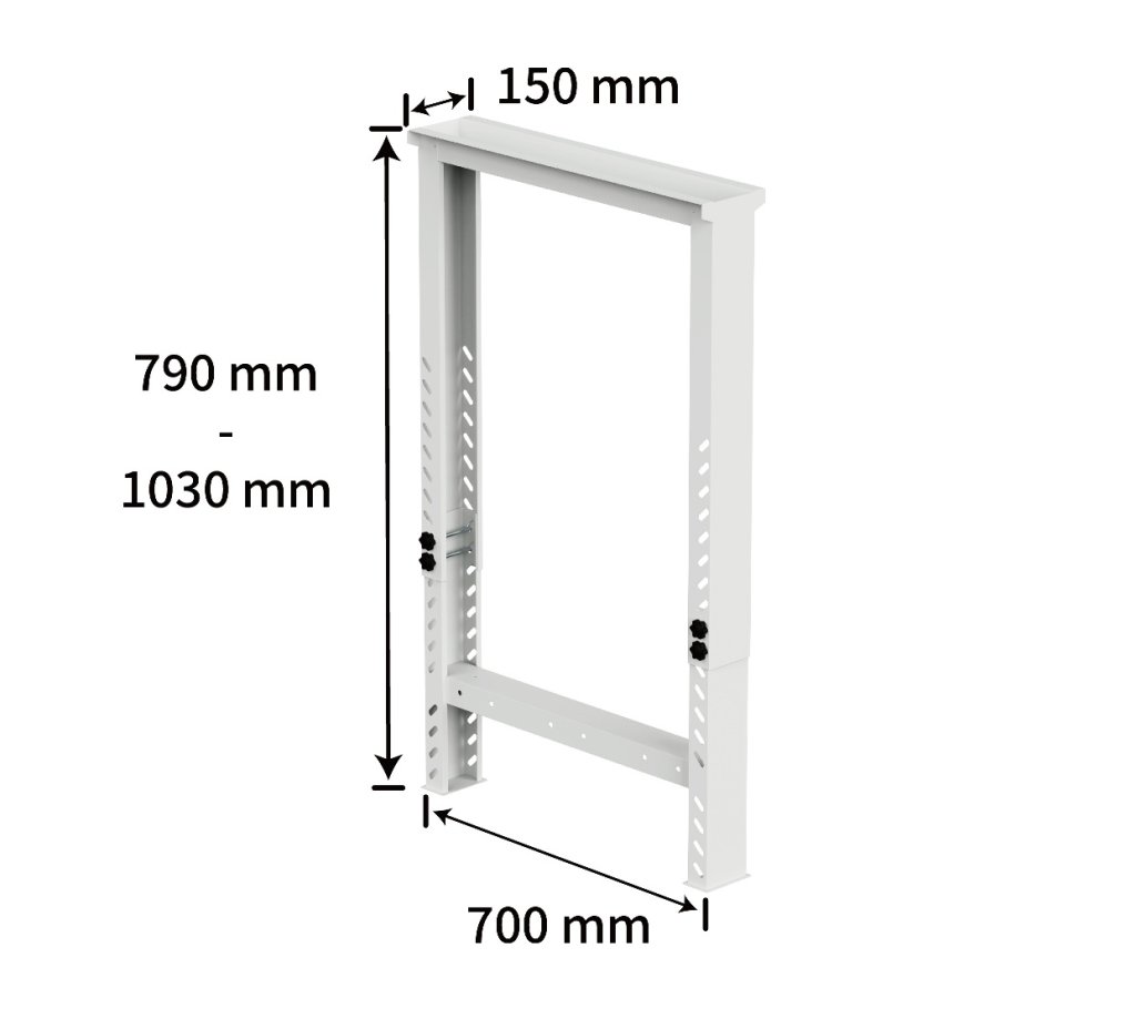 Výškovo prestaviteľné prevedenie nohy typ HDZ-T02, výška 790 - 1030 mm, šírka 150 mm, hĺbka 699 mm, farba svetlosivá RAL 7035. celý popis a parametre