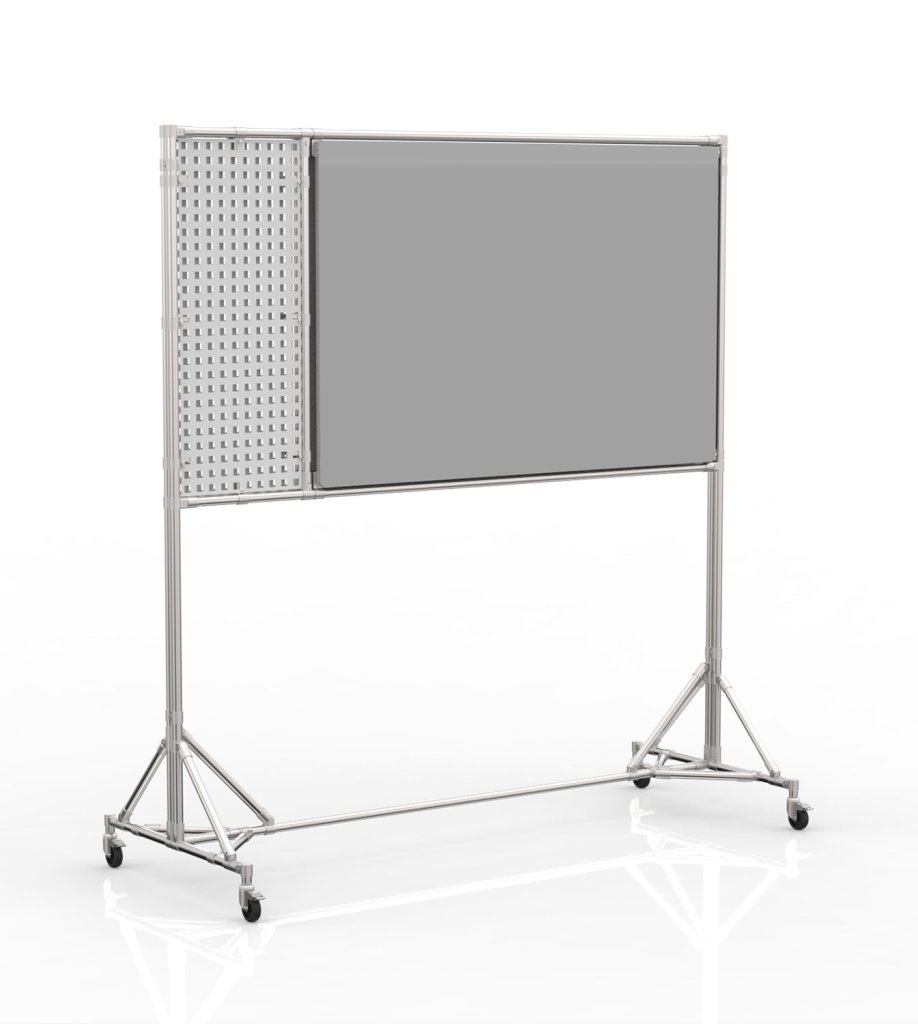 Obojstranná pojazdná tabuľa s magnetickou popisnou plochou pre jednoduchú vizualizáciu nápadov. Súčasťou konštrukcie je perfopanel na praktické uchytenie úložných boxov či materiálov. Vďaka praktickým kolieskam je možné tabuľu ľahko a bez námahy premiestniť. Ideálne pre školy, kancelárie alebo konferenčné miestnosti. Výška 2170 x šírka 2038 x hĺbka 816 mm.