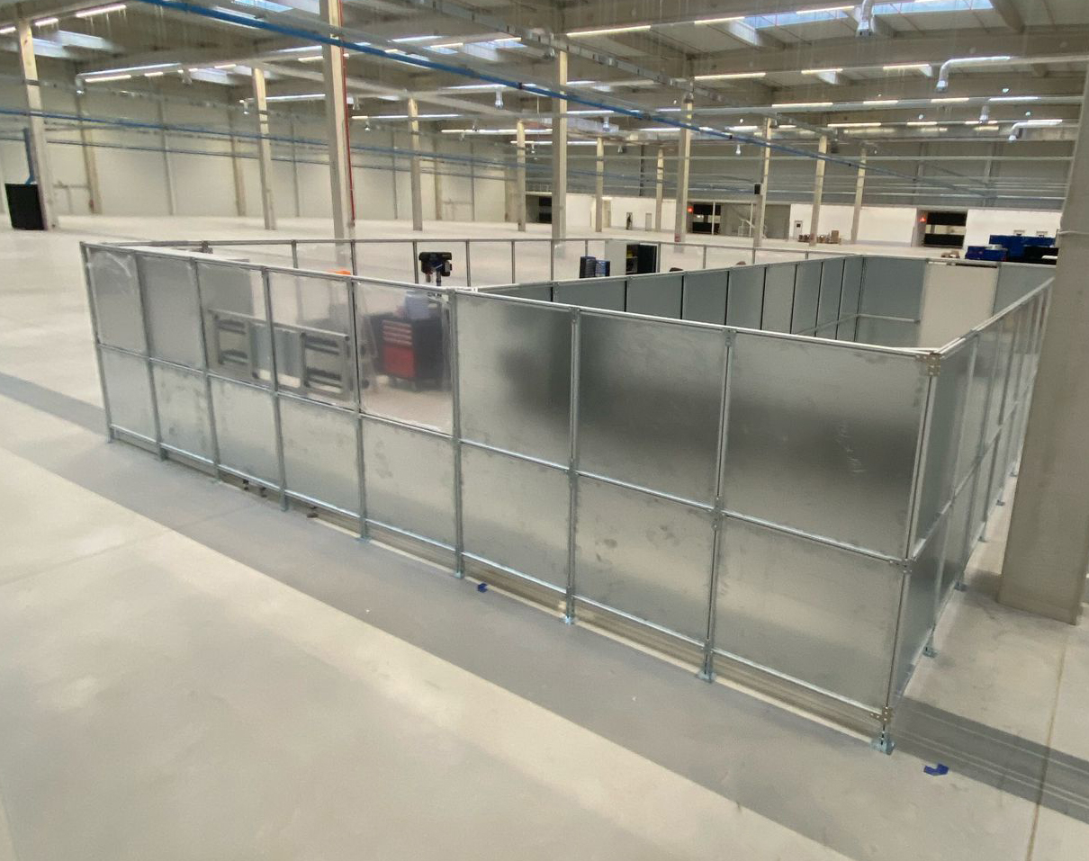 Ochranné bezpečnostné oplotenie, alebo oplotenka, je kľúčovým prvkom na zabezpečenie bezpečnosti na pracoviskách. Je navrhnuté tak, aby obmedzilo prístup k nebezpečným pracovným strojom a zariadeniam, čím chráni zamestnancov pred úrazmi a nehodami. Tento typ oplotenia sa bežne využíva v priemyselných prevádzkach, skladoch a výrobných halách. Oplotenie je z hliníkovej konštrukcie s kotvením do zeme pomocou pätiek, výplne môžu byť z KASI GLASS o hrúbke 3 mm alebo z pozinkovaného plechu o hrúbke 0,8 mm, dvere z lamino dosky o hrúbke 18 mm so zámkom môžu byť posuvné alebo otváracie. Oplotenka môže byť vyrobená na mieru v rôznom prevedení. Rozmery 2000 x 9040 x 8040 mm.