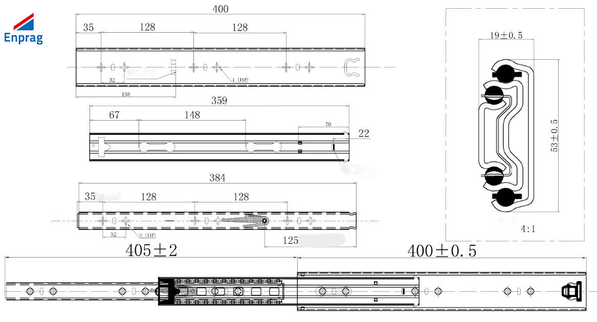 Guľôčkový plnovýsuv, dĺžka 400 mm, bez dotlmenia. Hrúbka materiálu 2 mm. Nosnosť 90 kg. celý popis a parametre