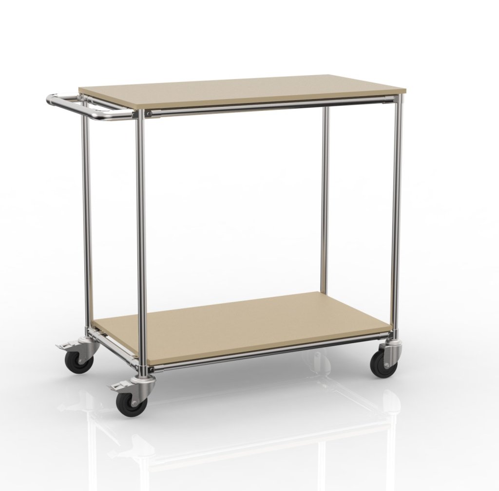 Policový vozík z rúrkového stavebnicového systému predstavuje modernú a ekonomickú alternatívu k tradičnému policovému vozíku s oceľovou konštrukciou. Ložná plocha je tvorená kvalitnými doskami DTDS Kronospan, ktoré poskytujú spoľahlivú podporu a sú odolné voči bežnému opotrebovaniu. Policový vozík je vybavený 4x kolieskami pre jednoduchú manipuláciu - 2x otočné koleso s brzdou a 2x otočné koleso bez brzdy. Nosnosť na poschodie 100 kg, celková nosnosť 200 kg. Rozmery vozíka 1010 x 525 x 975 mm.