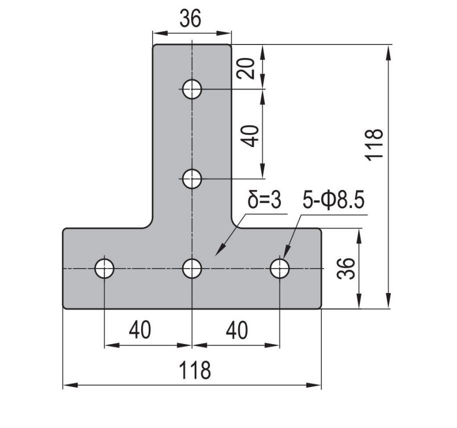 Prepojovací konektor pre spojenie 2 hliníkových profilov. Rozmery 118 x 118 mm. Hmotnosť 149 g.