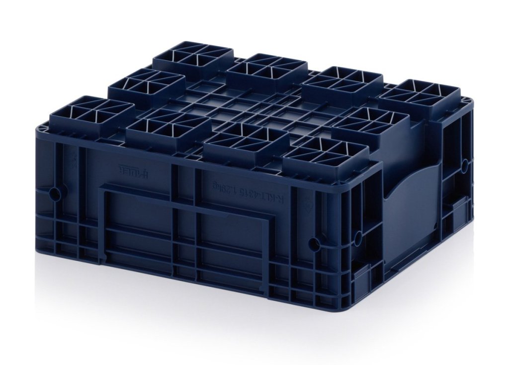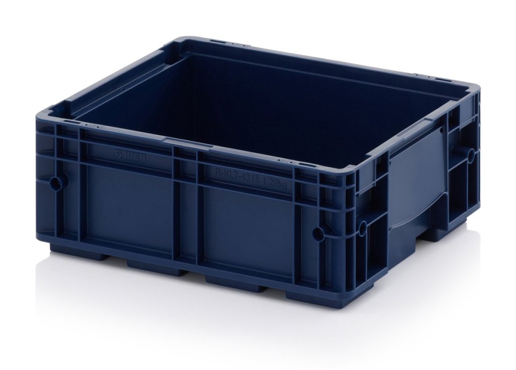 R-KLT prepravka vyrobená z kvalitného polypropylénu odolného voči olejom, tukom a väčšine kyselín a lúhov. Tepelná stálosť od -20° do 100° C, farba RAL 5003 modrá. Rrozmery v. 147 x š. 300 x hl. 400 mm. Extrémne stabilné kompozitné dno, nosnosť prepravky 20 kg, max. stohovacia nosnosť 600 kg.