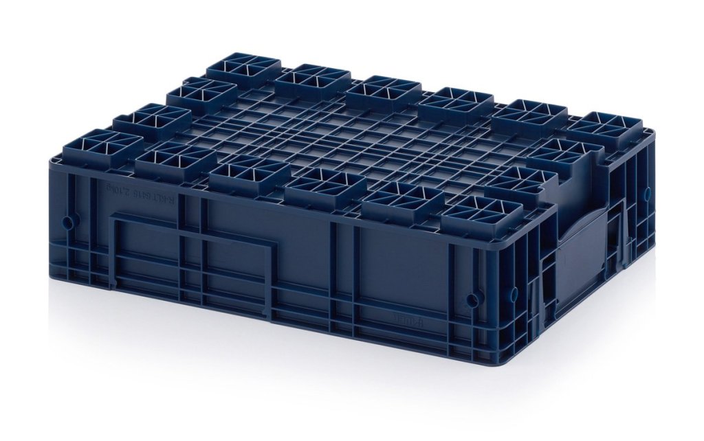 R-KLT prepravka vyrobená z kvalitného polypropylénu odolného voči olejom, tukom a väčšine kyselín a lúhov. Tepelná stálosť od -20° do 100° C, farba RAL 5003 modrá. Rrozmery v. 147 x š. 400 x hl. 600 mm. Extrémne stabilné kompozitné dno, nosnosť prepravky 20 kg, max. stohovacia nosnosť 600 kg.