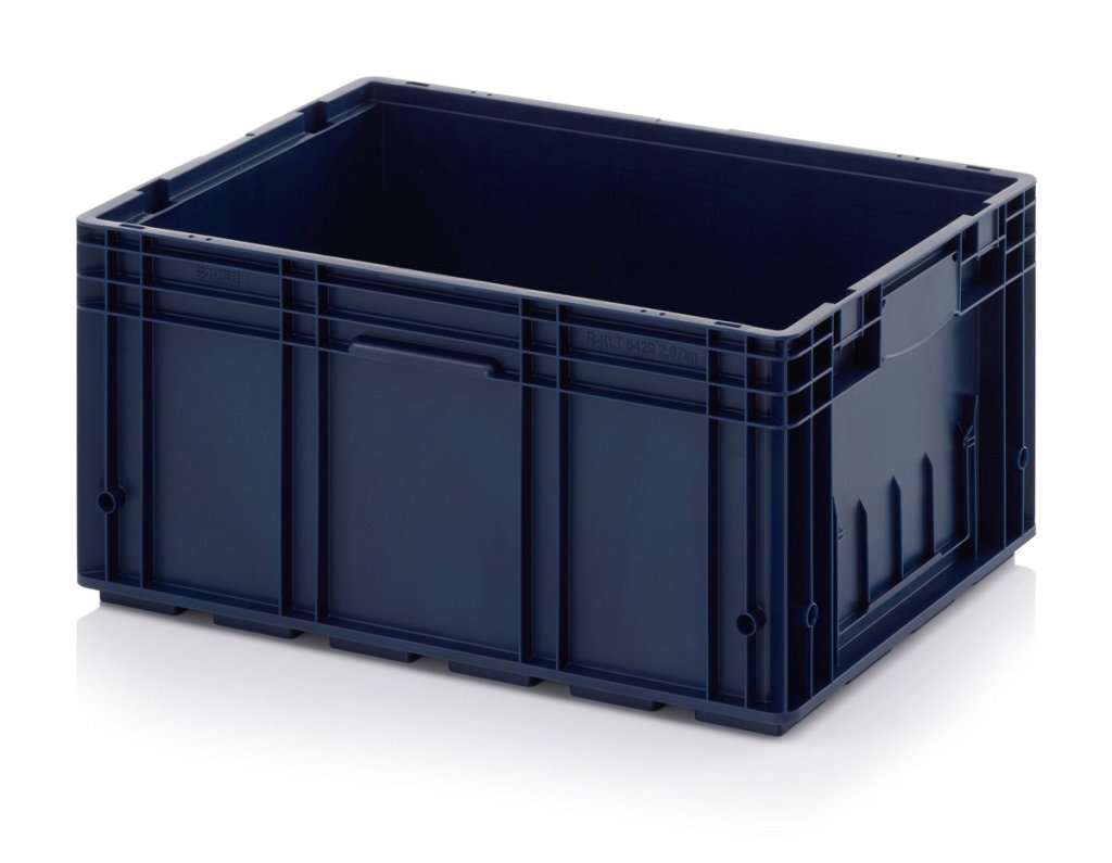 R-KLT prepravka vyrobená z kvalitného polypropylénu odolného voči olejom, tukom a väčšine kyselín a lúhov. Tepelná stálosť od -20° do 100° C, farba RAL 5003 modrá. Rrozmery v. 280 x š. 400 x hl. 600 mm. Extrémne stabilné kompozitné dno, nosnosť prepravky 20 kg, max. stohovacia nosnosť 600 kg.