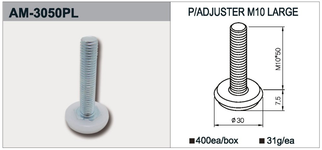 Rektifikačná skrutka AM-3050PL. Závit M10 x 50, celková dĺžka 57,5 mm. celý popis a parametre