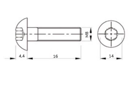 Skrutka s polguľatou hlavou je typ bežného spojovacieho prvku so zaguľatenou hlavou. Tento dizajn poskytuje lepšie rozloženie sily pri uťahovaní skrutky a zaisťuje pevné spojenie. Priemer závitu M8. Celková dĺžka 20,4 mm. Hmotnosť 8,11 g.