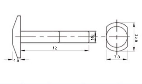 Skrutka s T-hlavou na pripevnenie príslušenstva k hliníkovým profilom. Dĺžka skrutky 12 mm. Hmostnosť 6,2 g.