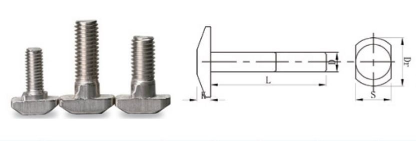 Skrutka s T-hlavou na pripevnenie príslušenstva k hliníkovým profilom. Dĺžka skrutky 16 mm. Hmostnosť 10 g. celý popis a parametre