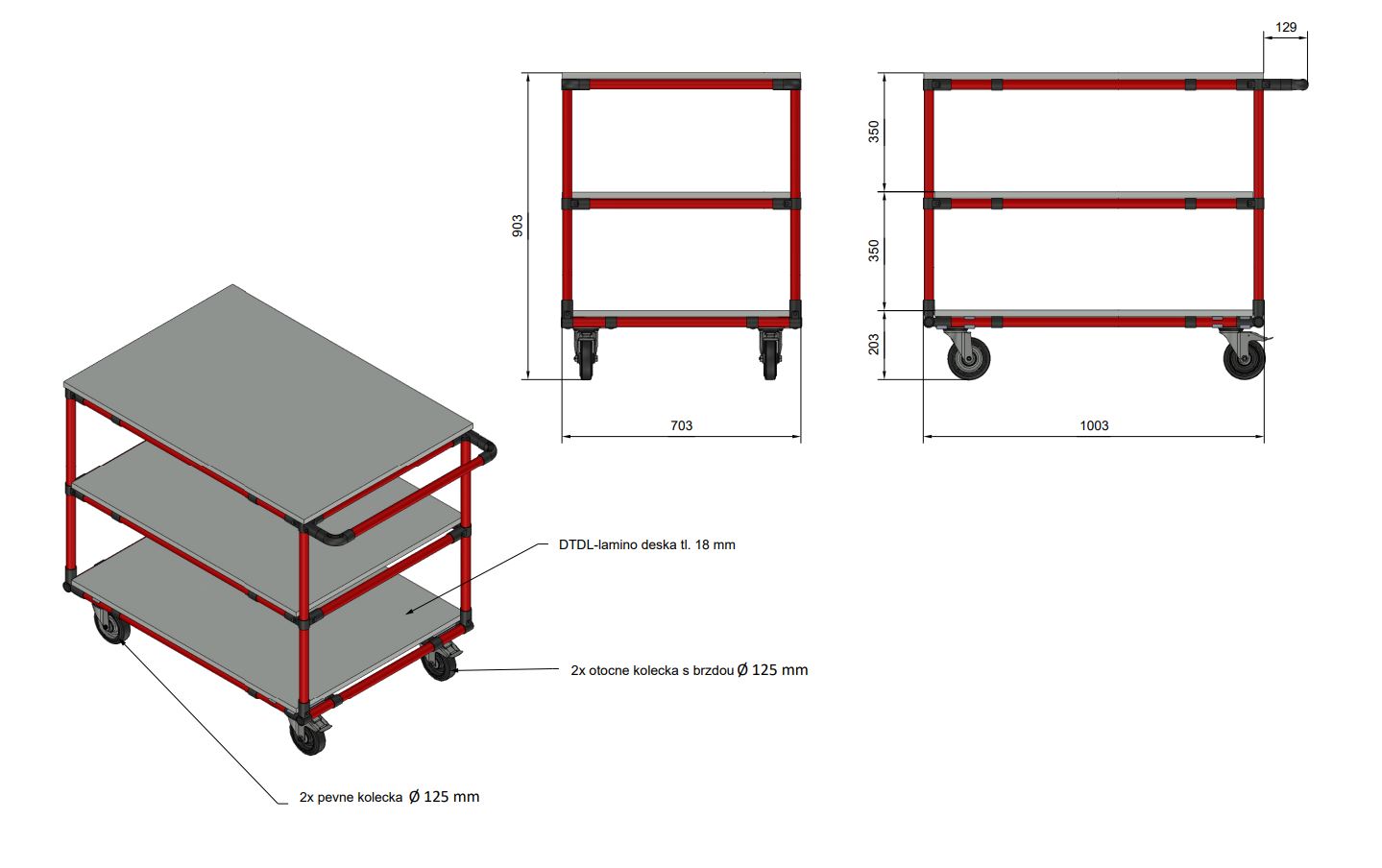 Transportný vozík z trubkového stavebnicového systému je šikovným pomocníkom vhodným do priemyselných priestorov, skladov a celý popis a parametre