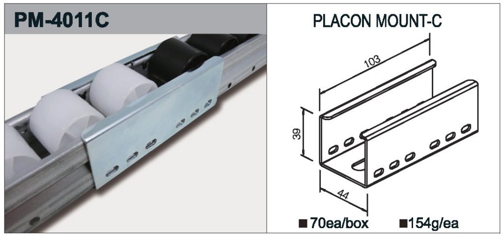 Úchyt valčekové trate typ PM-4011C. Pre dráhy šírky 40 mm s oceľovým telom. celý popis a parametre