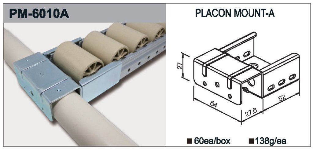 Úchyt valčekové trate typ PM-6010A. Pre dráhy šírky 60 mm s oceľovým telom. celý popis a parametre