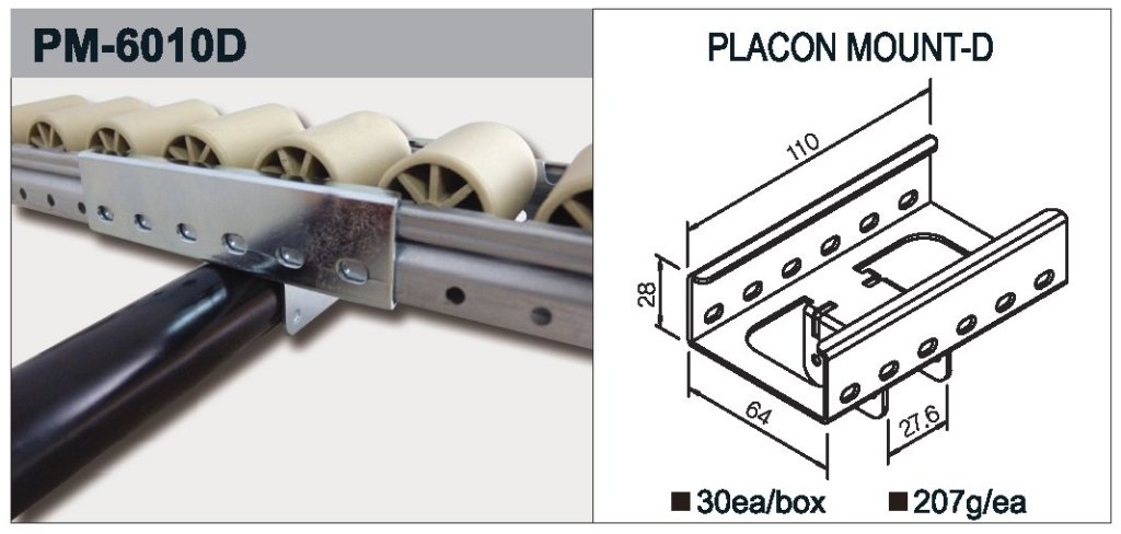 Úchyt valčekové trate typ PM-6010D. Pre dráhy šírky 60 mm s oceľovým telom. celý popis a parametre