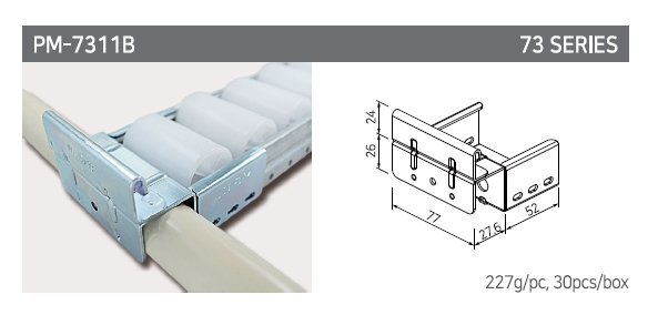 Úchyt valčekové trate typ PM-7311B. Pre dráhy šírky 73 mm s oceľovým telom. celý popis a parametre