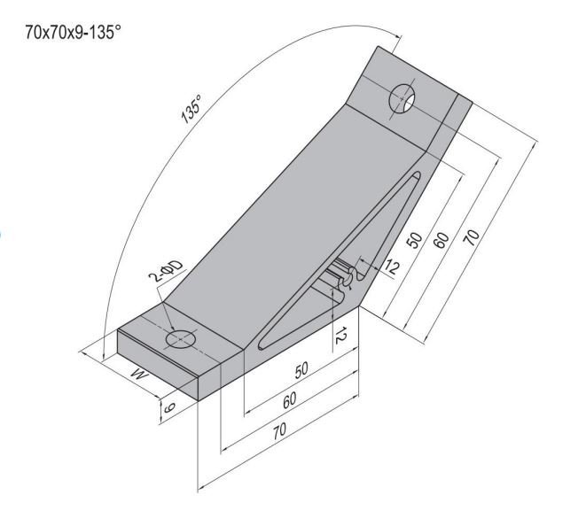 Uholník na spojenie 2 profilov pod uhlom 135°. Hmotnosť 96 g. celý popis a parametre