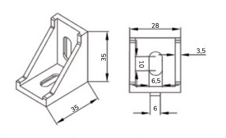 Uholník s uhlom 90° na spájanie profilov. Rozmery 35 x 28 x 35 mm. Spojovací materiál nie je súčasťou balenia. celý popis a parametre