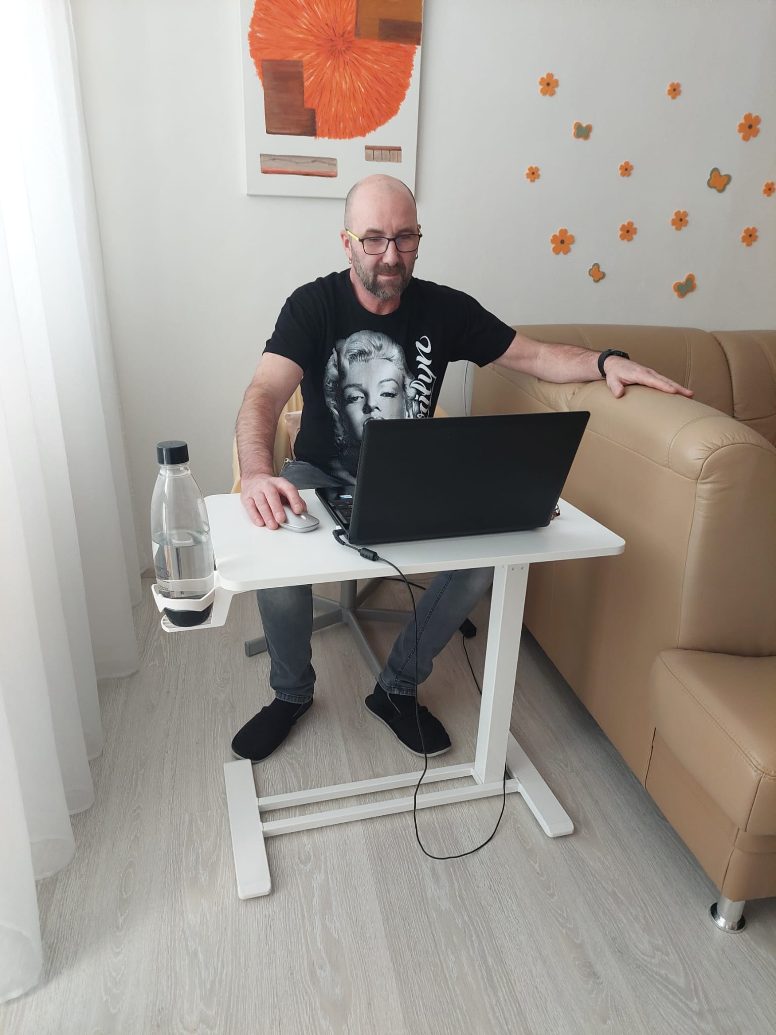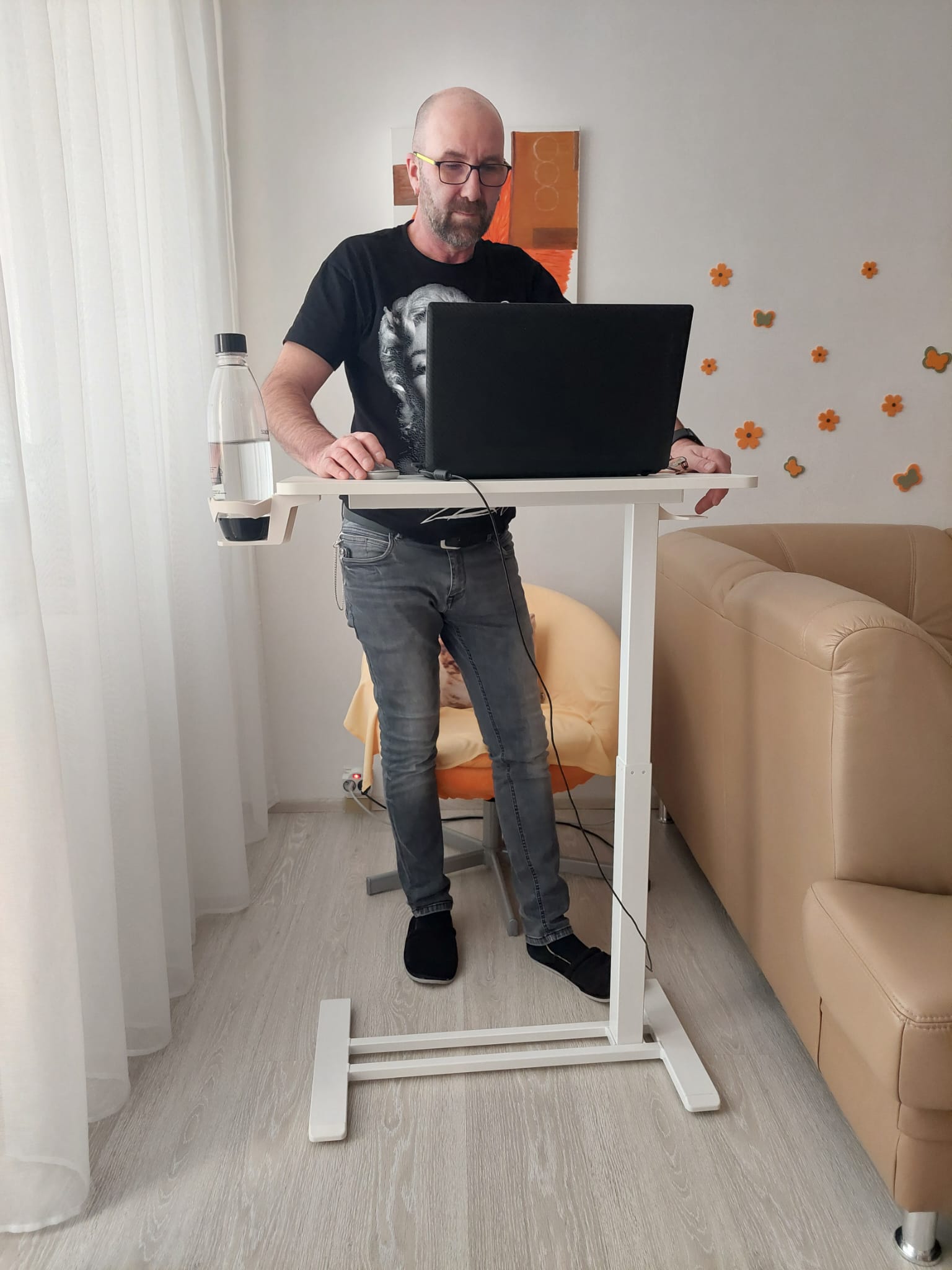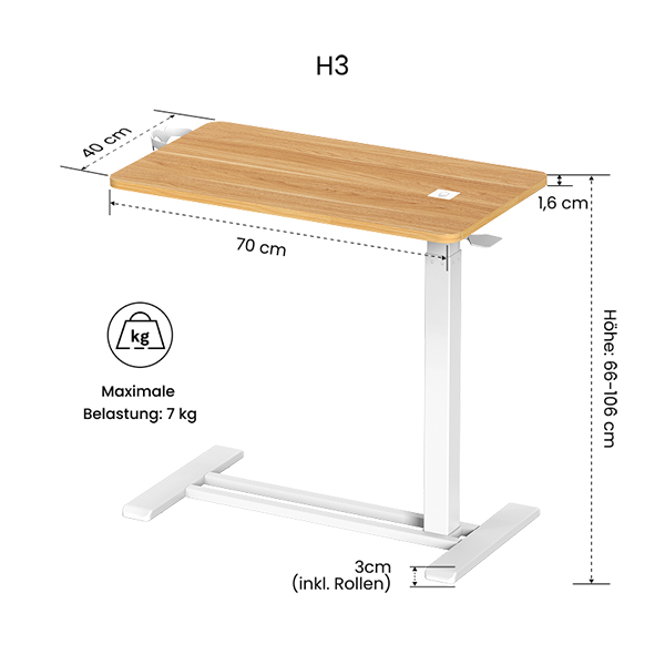 Manuálne výškovo nastaviteľný kancelársky a pracovný stôl so štyrmi skrytými kolieskami je ideálnym prenosným pracovným miestom pre domácnosť alebo kanceláriu. Zabudovaná plynová pružina stola umožňuje jednoduché a plynulé nastavenie výšky v rozmedzí 660 - 1060 mm. Na doske stola sa nachádza praktický držiak na nápoje. Stôl je v bielej farbe. Rozmery 660 - 1060 x 700 x 400 mm.
