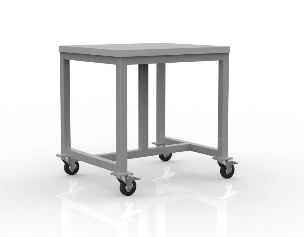 Zváraný dielenský stôl na kolieskach. Súčasťou stola je ESD pracovná plocha z laminovanej dosky s hrúbkou 19 mm s okrajom proti prepadnutiu, dve kolieska s priemerom 125 mm s brzdou a dve kolieska bez brzdy. Konštrukcia zo zváraného jeklu 45 x 45 mm opatrená čiernym lakom. Výška pracovnej plochy 880 mm. Nosnosť pri rovnomernom zaťažení je 500 kg. Rozmery 880 x 1500 x 680 mm.